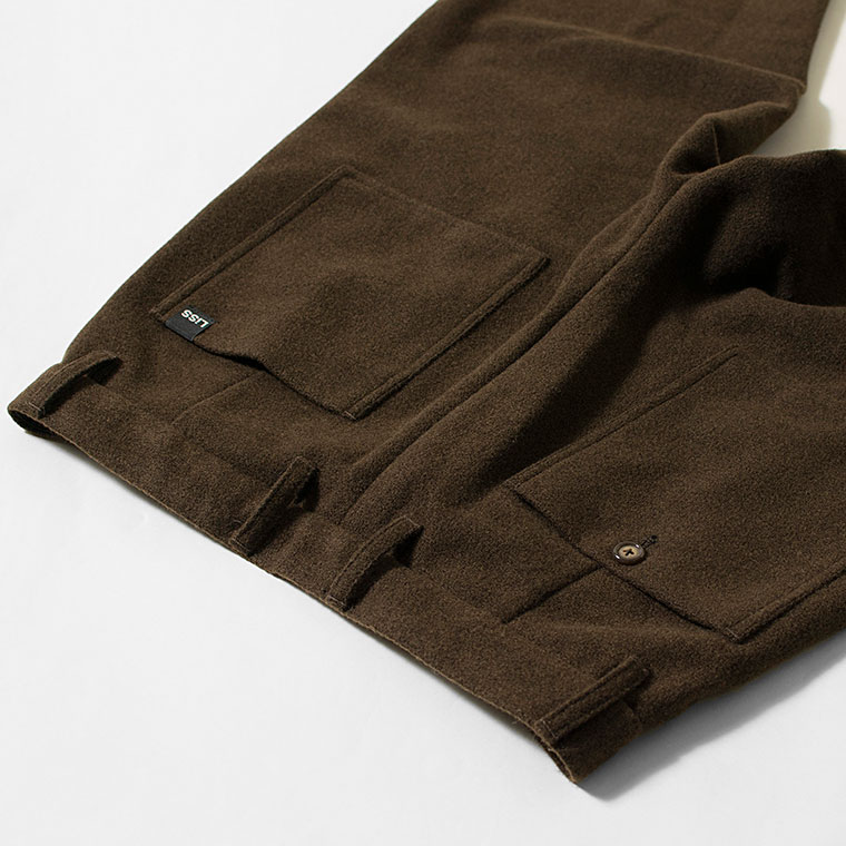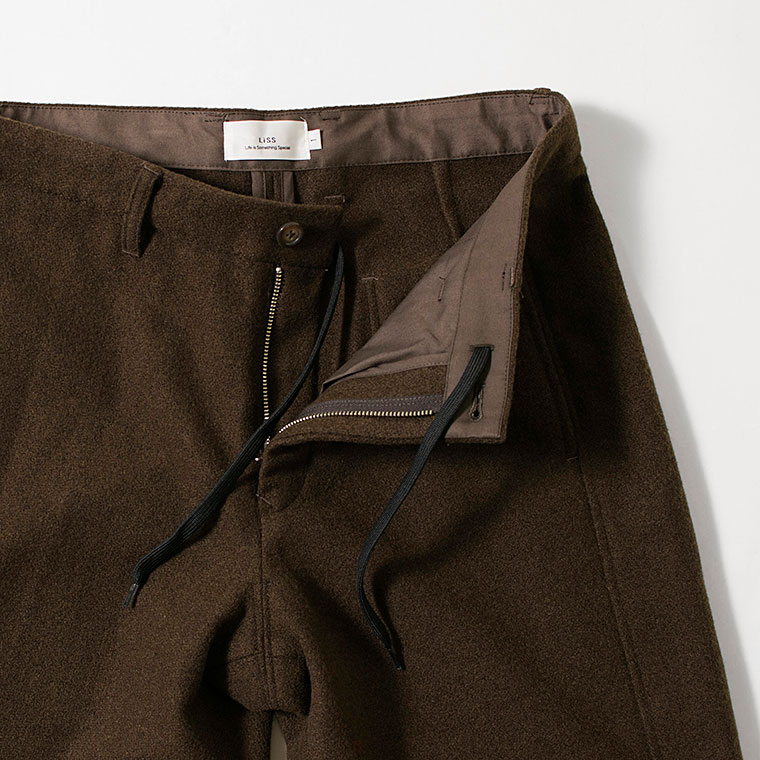 LiSSの、ウールにも見えるやや厚手で柔らかなテーパードパンツが入荷しました。 ふんわりとした温かみのある生地感です。カジュアルからキレイ目まで幅広く活用いただけます。 是非ご検討くださいませ。
